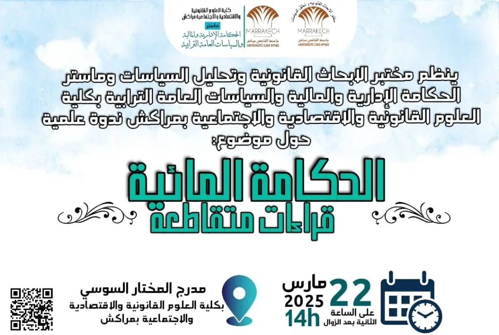 تنظم كلية العلوم القانونية والاقتصادية والاجتماعية بمراكش، عبر مختبر الأبحاث القانونية وتحليل السياسات، ندوة علمية حول موضوع “الحكامة المائية: قراءات…